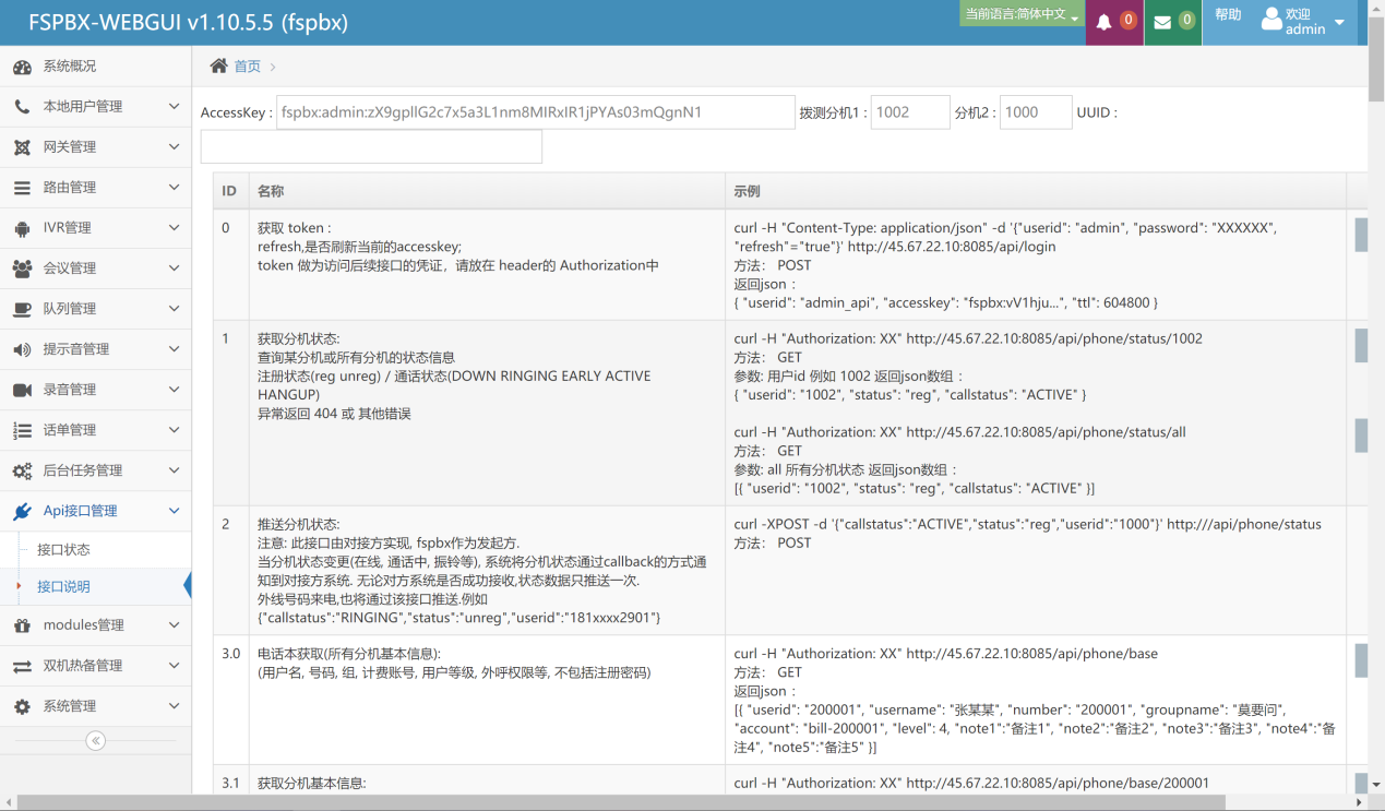 在web页面上,我们把所有的系统支持的接口和描述都放在上面,便于用户的第三方系统和我们的系统进行对接控制。